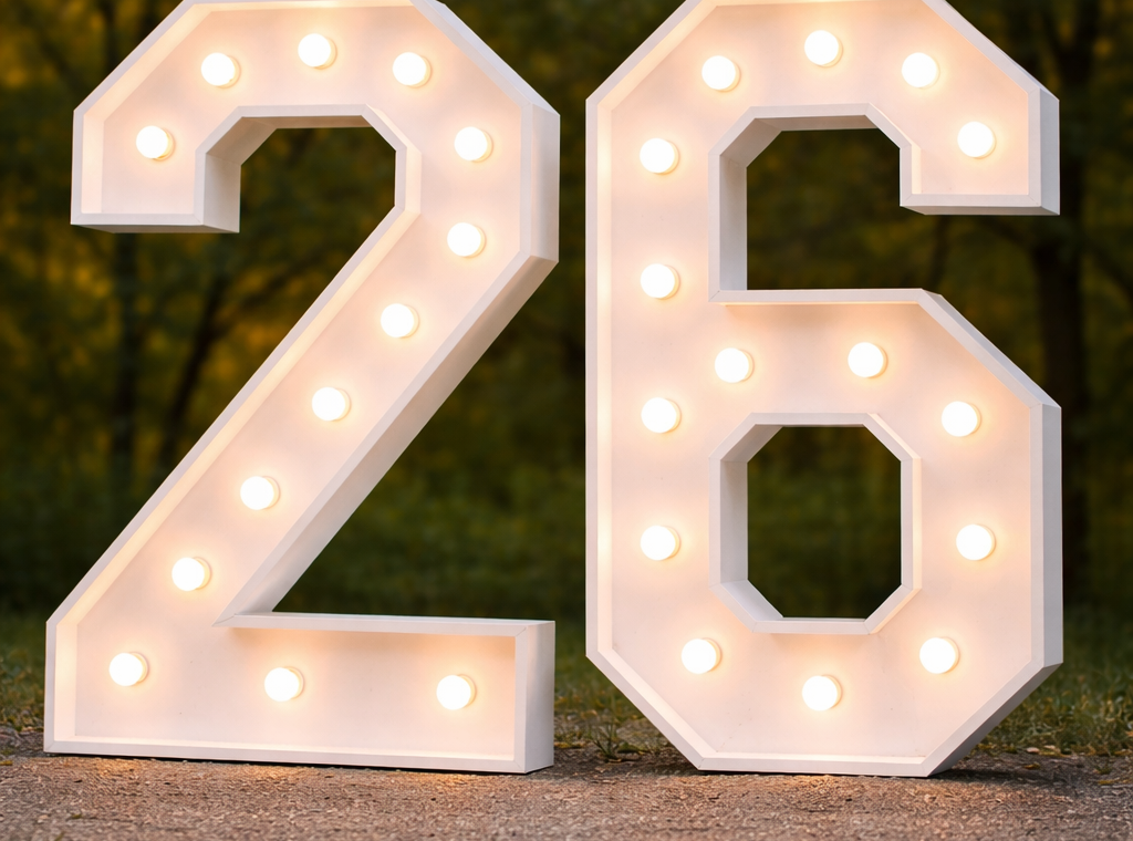 We offer marquee lights in any number or letter, giving you the flexibility to spell out names, initials, ages, or custom phrases that fit your event perfectly. Whether you’re going for something timeless and elegant or bold and playful, these pieces are designed to adapt to your style.